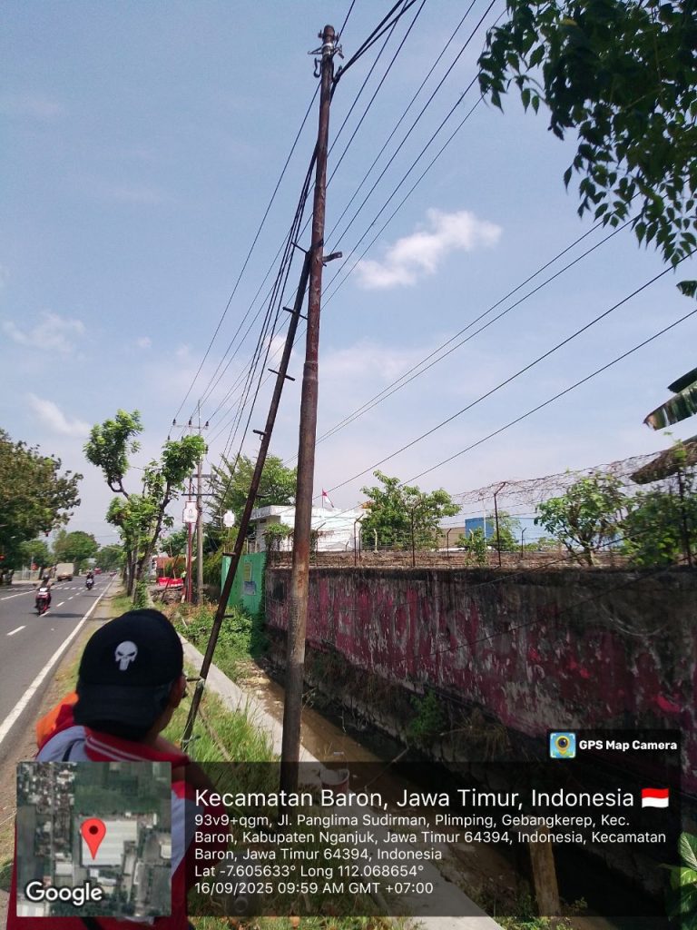 Radar Waktu, Nganjuk– Menyusul sorotan publik terkait kabel fiber optik yang semrawut di depan Pabrik Indoprima Baron, Desa Gebangkerep, Baron, Kabupaten Nganjuk, Telkom bergerak cepat menindaklanjuti laporan tersebut. Pada Selasa, 16 September 2025, tim lapangan Telkom telah melakukan peninggian kabel sekaligus penggeseran tiang utilitas untuk memastikan jalur pejalan kaki dan pengguna jalan kembali aman serta tertata.